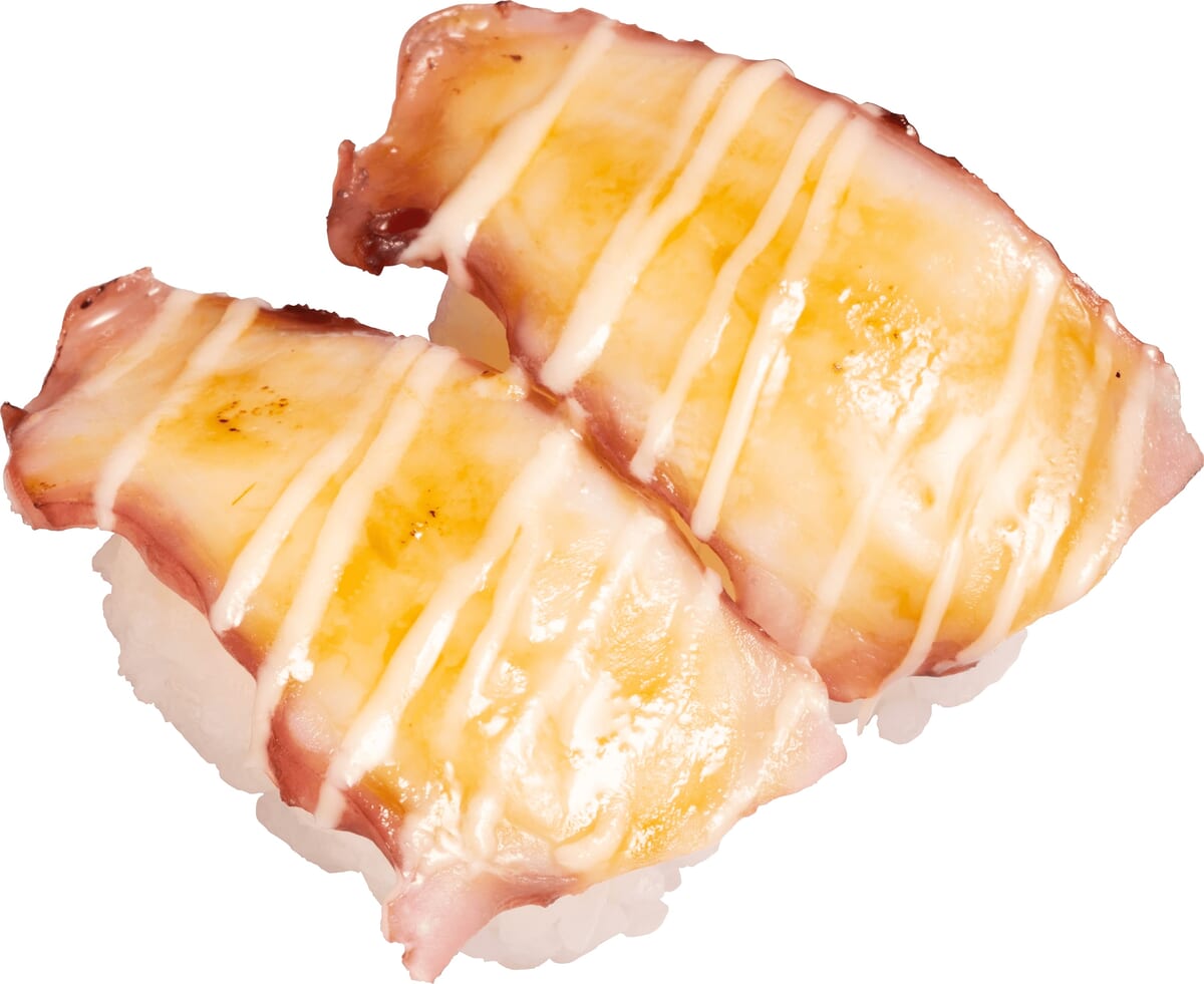 定番人気のイカ天にぎりにバジルマヨをトッピング。