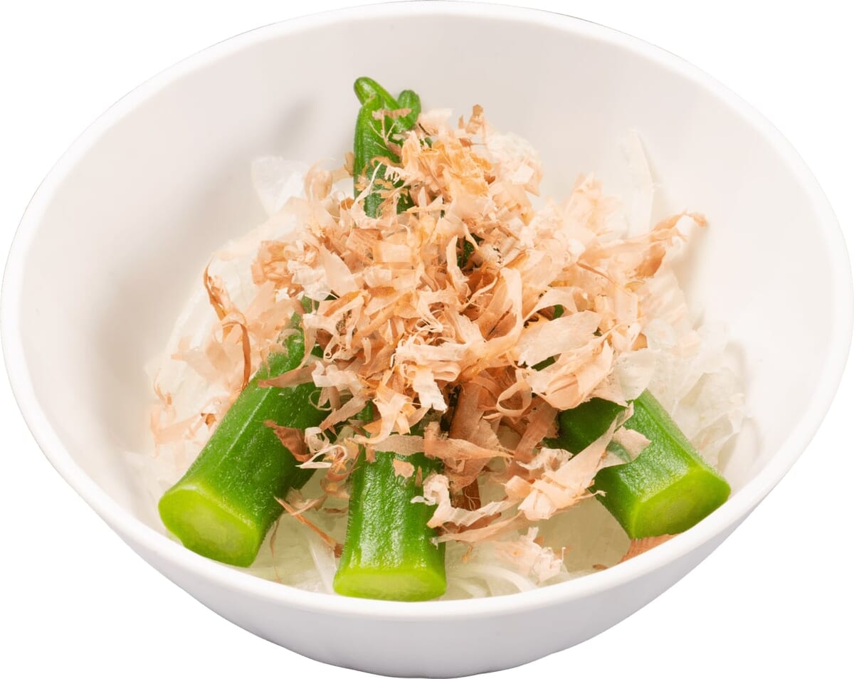 オクラの浅漬けに鰹節をたっぷりかけた「オクラ浅漬け盛り」