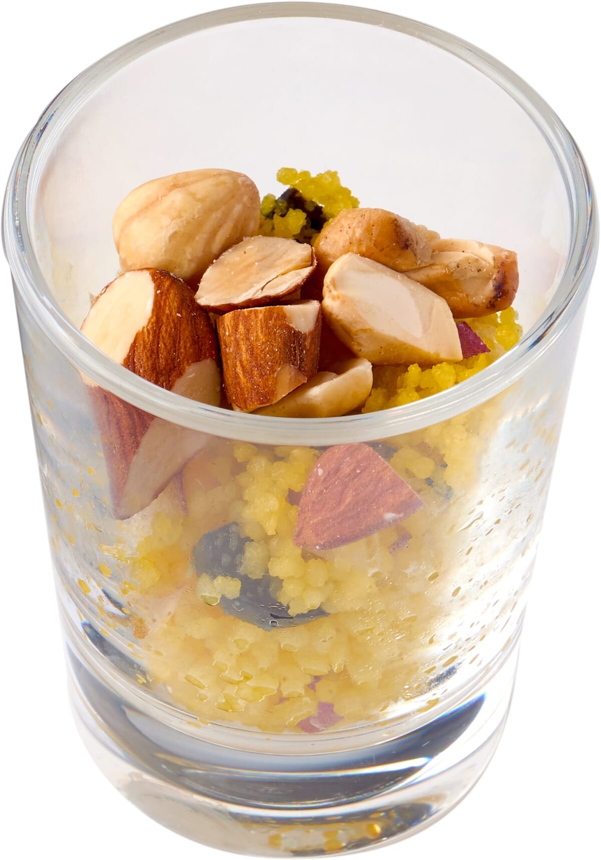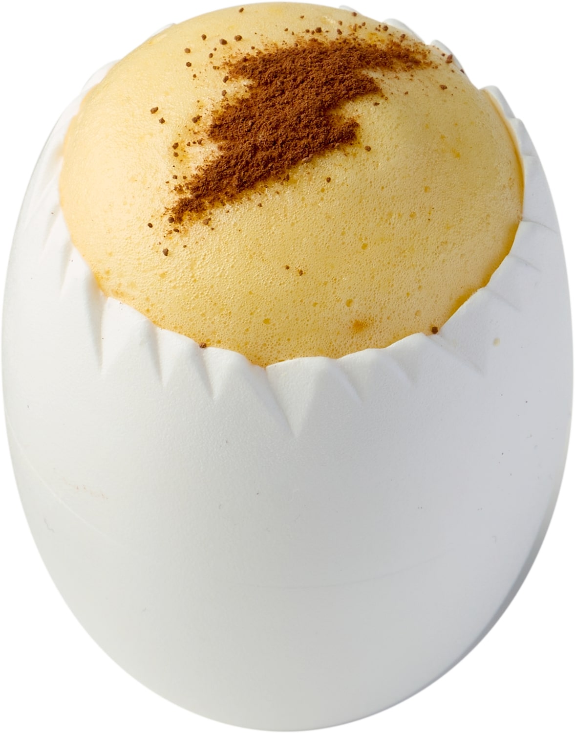 たまご型の容器の中には、フルーツがたっぷり入り、 ほどよい甘さのはちみつ レモンゼリーと相性抜群。
