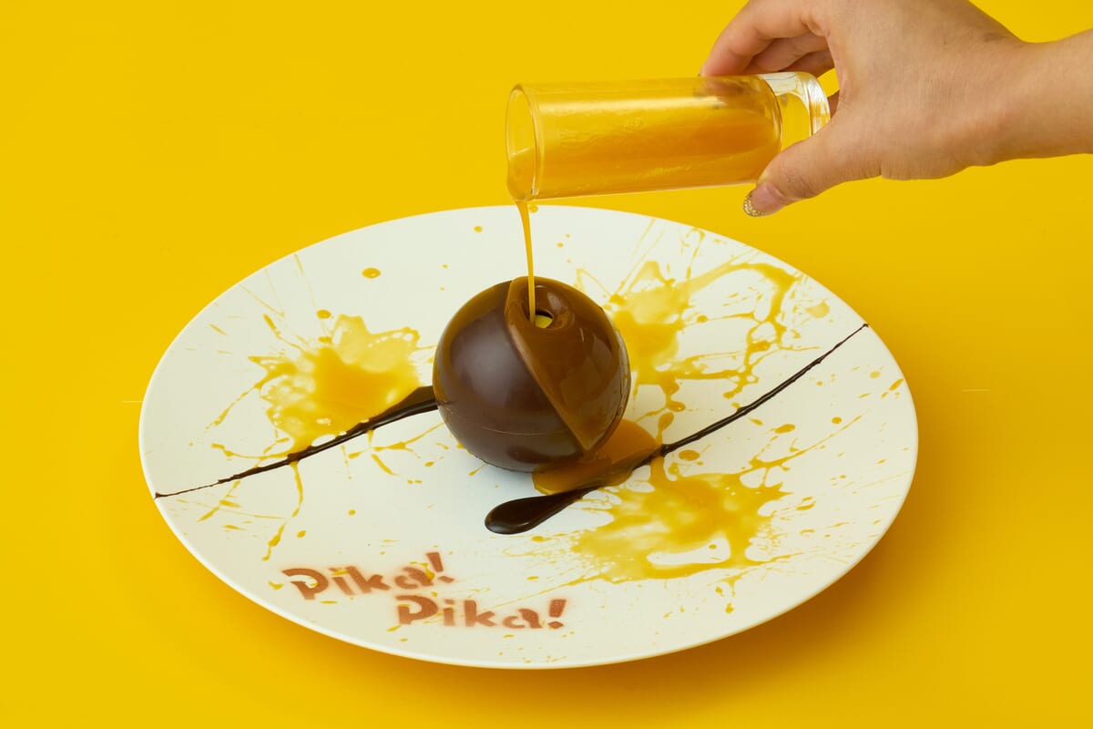 チョコレートドームを溶かして食べ進める「ピカチュウ スペシャルデザート」(オプション)