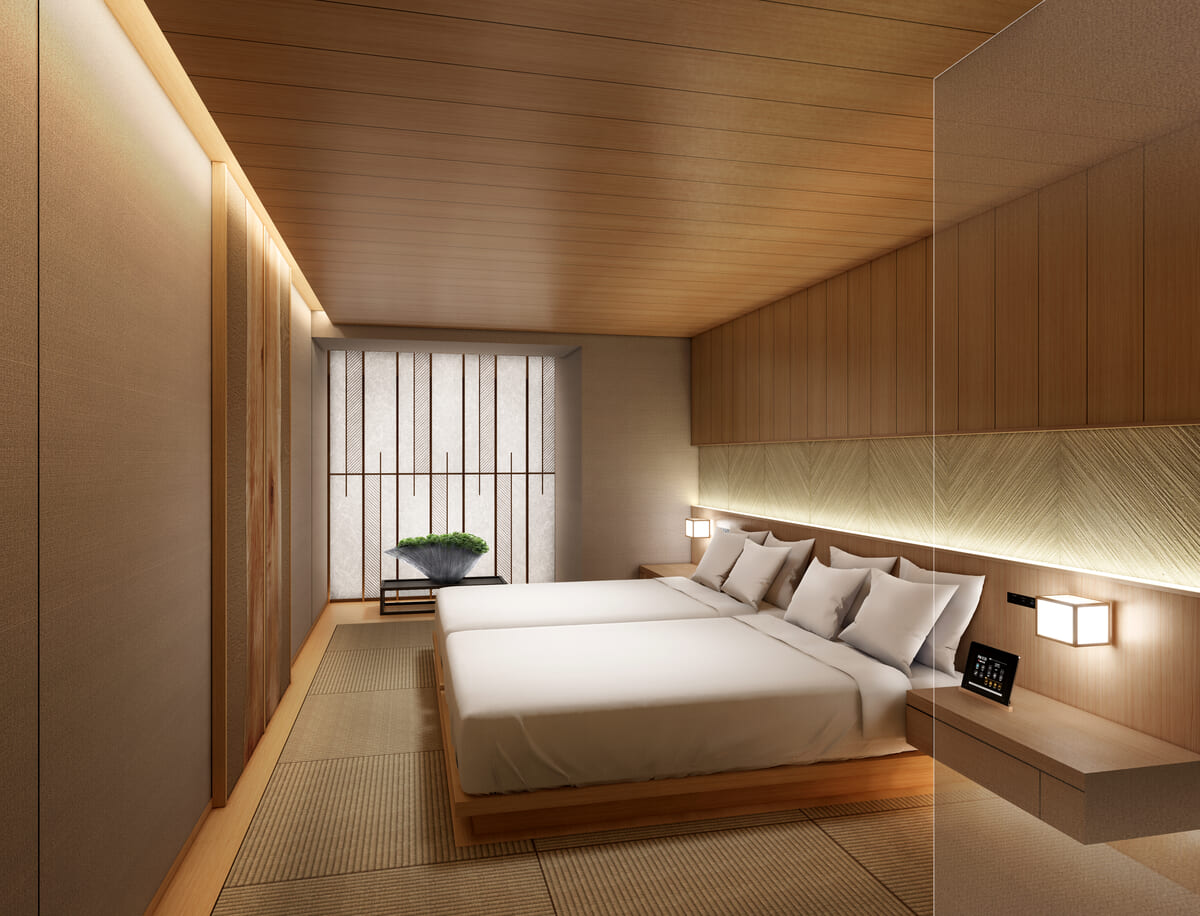 畳敷きの和モダンなの客室を含む全150室を擁し、全室50m2以上のゆとりある広さになっています。