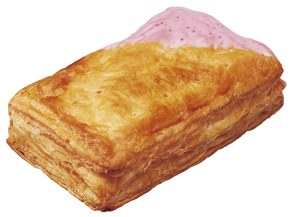 なめらかなレアチーズ風味のクリームにいちごとチェリーのソースを合わせ、サクサクのパイ生地で包んで焼き上げた一品。