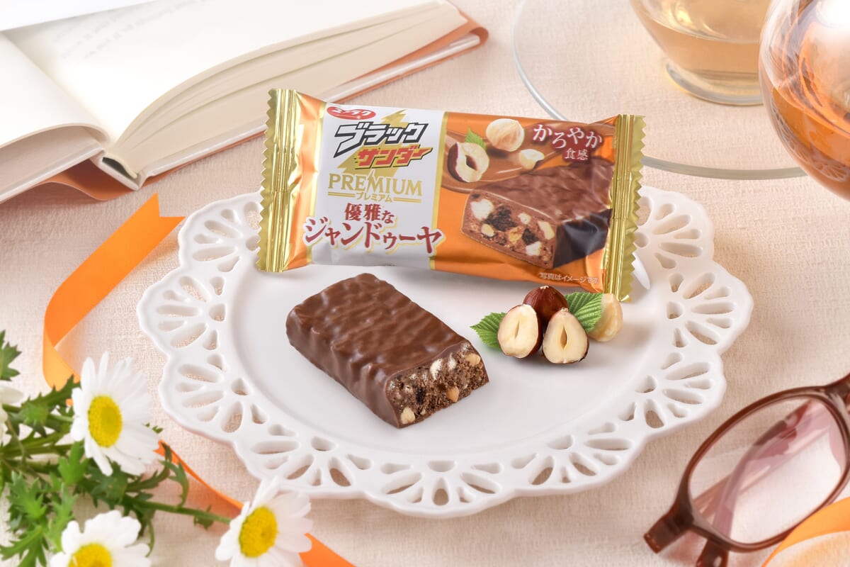 有楽製菓が販売する人気のお菓子「ブラックサンダープレミアム」シリーズから、「ブラックサンダー 優雅なジャンドゥーヤ」が登場!
