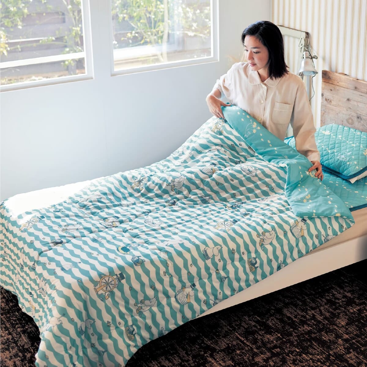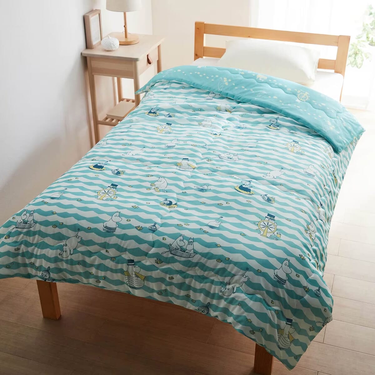 爽やかな「ムーミン」柄と接触冷感素材の、暑い季節にぴったりのキルトケット!