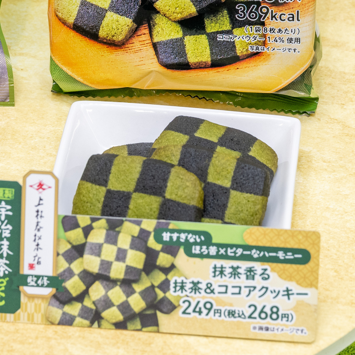 抹茶生地とココア生地のバランスを重視した、抹茶の良い風味が感じられるクッキーです。