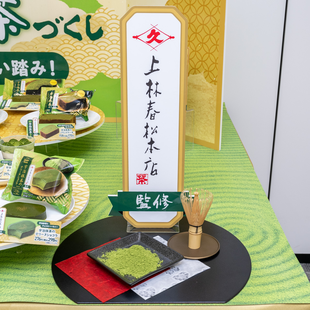 2023年のファミリーマートの「謹製宇治抹茶づくし」では、450年の歴史を持つ宇治抹茶の老舗「上林春松本店」監修のもと、スイーツやアイス、パン、お菓子など全16種類のフードを販売。
