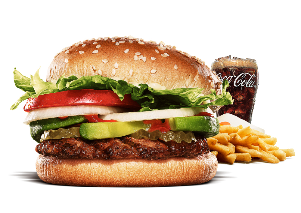 バーガーキングの対象バーガーとフレンチフライ(M)、ドリンク(M)が、平日も休日も朝昼夜、いつでもお得な価格で楽しめるセット「キングバリュー」
