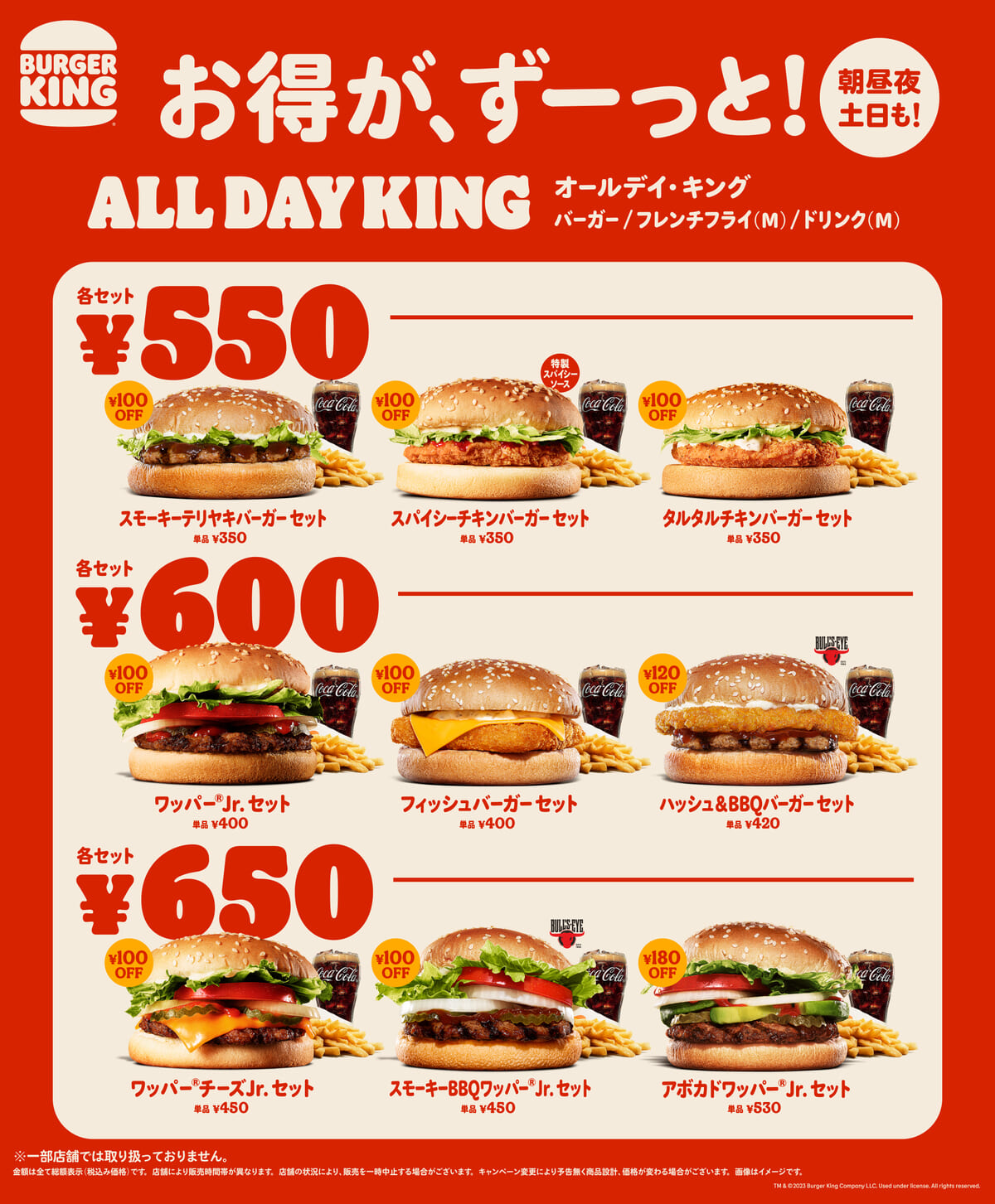 また、平日も休日も朝昼夜、いつでもお得なセットがリニューアルし「オールデイ・キング」として新たに販売されます。