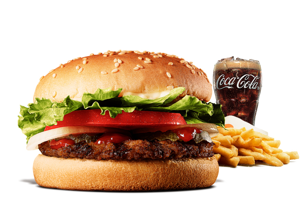 直火焼きの100%ビーフパティにフレッシュなレタス、トマト、オニオン、味のアクセントであるピクルスをクリーミーなマヨネーズとケチャップで仕上げた人気メニューです。
