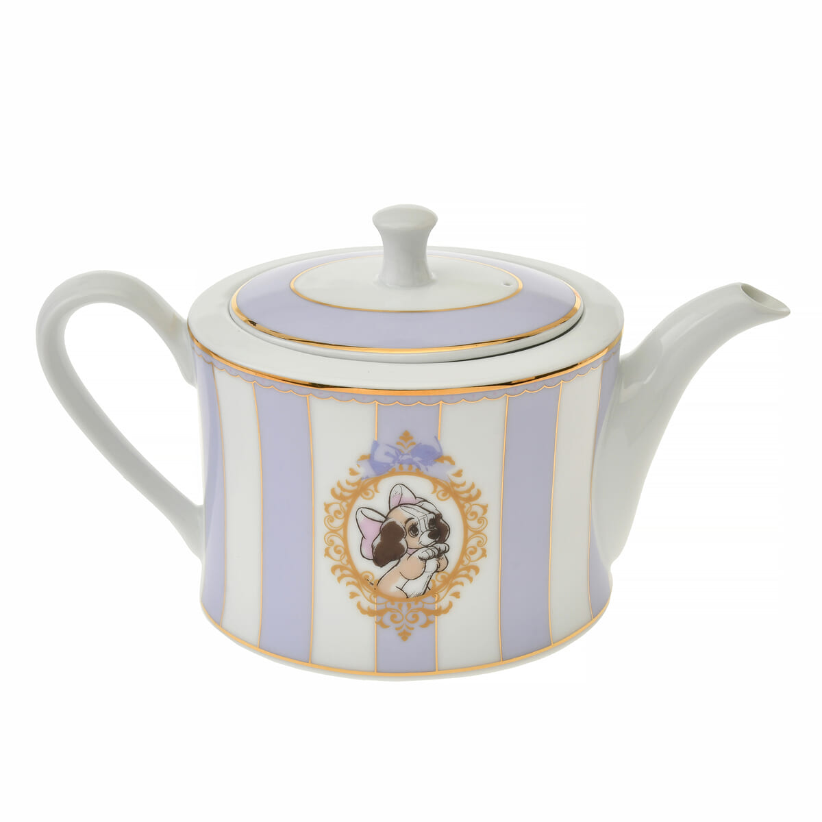 パステルパープル×ホワイトのストライプ柄を纏った『わんわん物語』の「レディ」をデザインしたカップ&ソーサー。