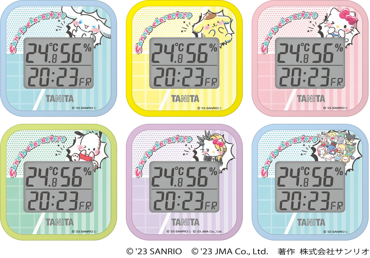タニタから、サンリオキャラクターの人気投票企画「2023年サンリオキャラクター大賞」とコラボレーションし、候補となる全てのキャラクターをそれぞれデザインしたデジタル温湿度計が登場!