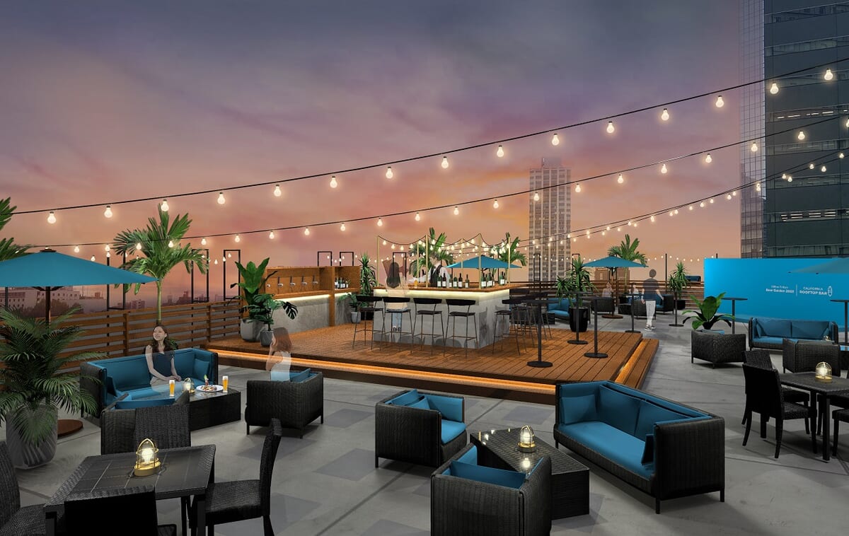 摩天楼に浮かぶルーフトップテラスで、カリフォルニアスタイルのビアパーティーを満喫。