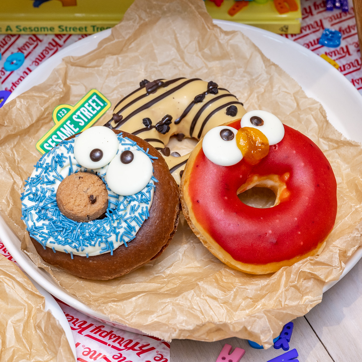 「エルモ」と「クッキーモンスター」がかわいらしいドーナツに変身。