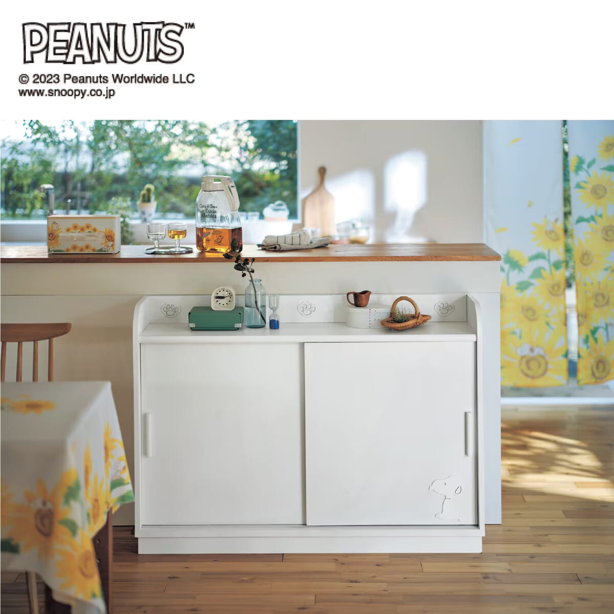 大きなひまわりからひょっこり顔を出す「スヌーピー」がかわいらしい柄と、