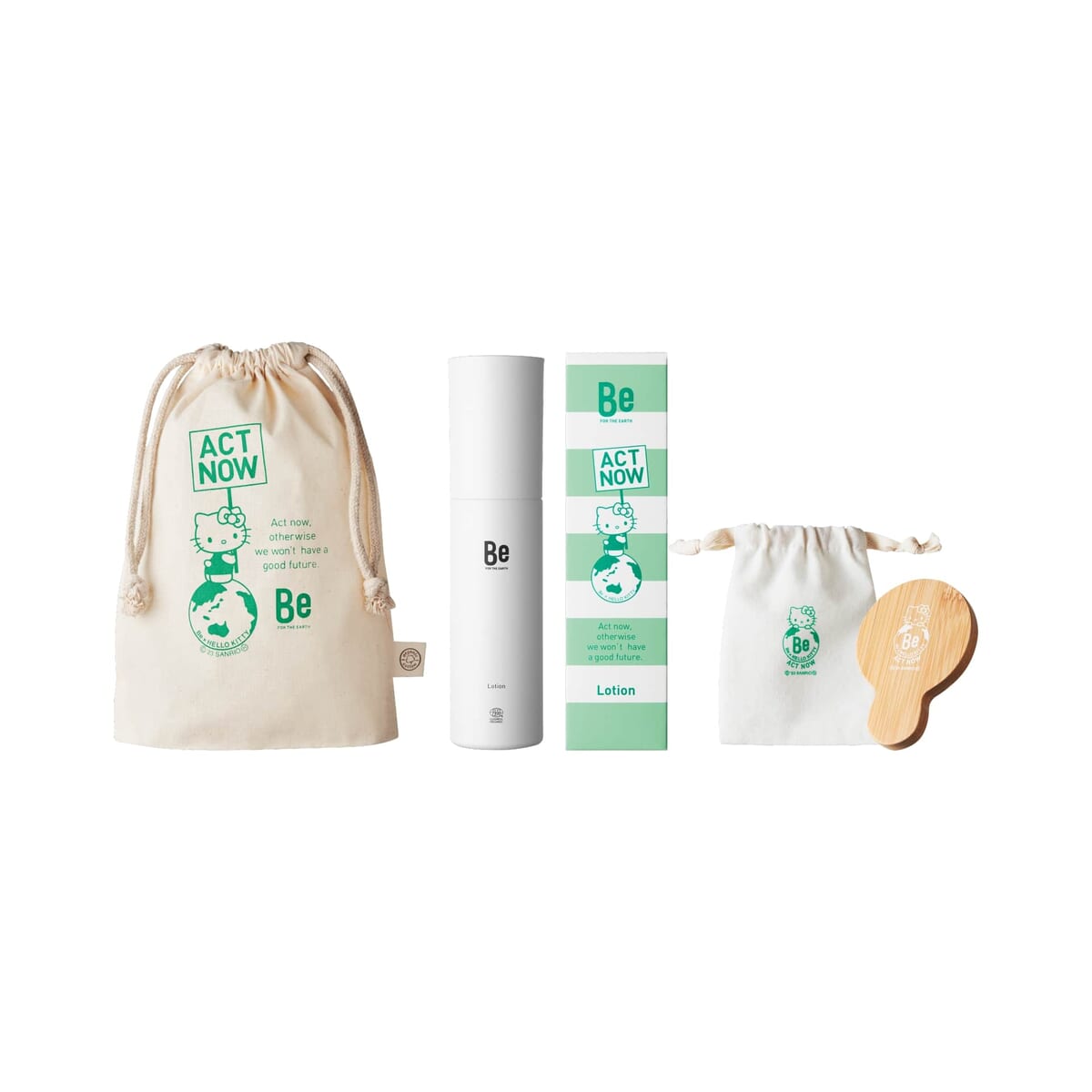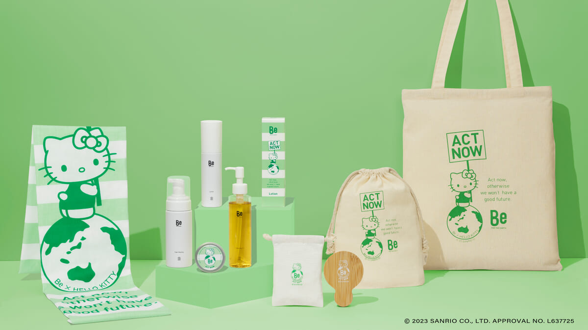 サステナブルビューティーブランド「Be」が、地球環境について考える「アースデイ」に「Be × ハローキティ ACT NOWコレクション」を新たに発売。