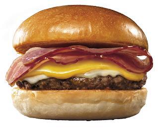 2種類のナチュラルチーズ(ゴーダ、チェダー)をのせてジューシーに焼き上げた絶品チーズハンバーグパティの上に、特製のベーコンを乗せた「絶品ベーコンチーズバーガー」