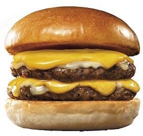 2種類のナチュラルチーズをのせてジューシーに焼き上げた絶品チーズハンバーグパティを2枚重ねた「ダブル絶品チーズバーガー」