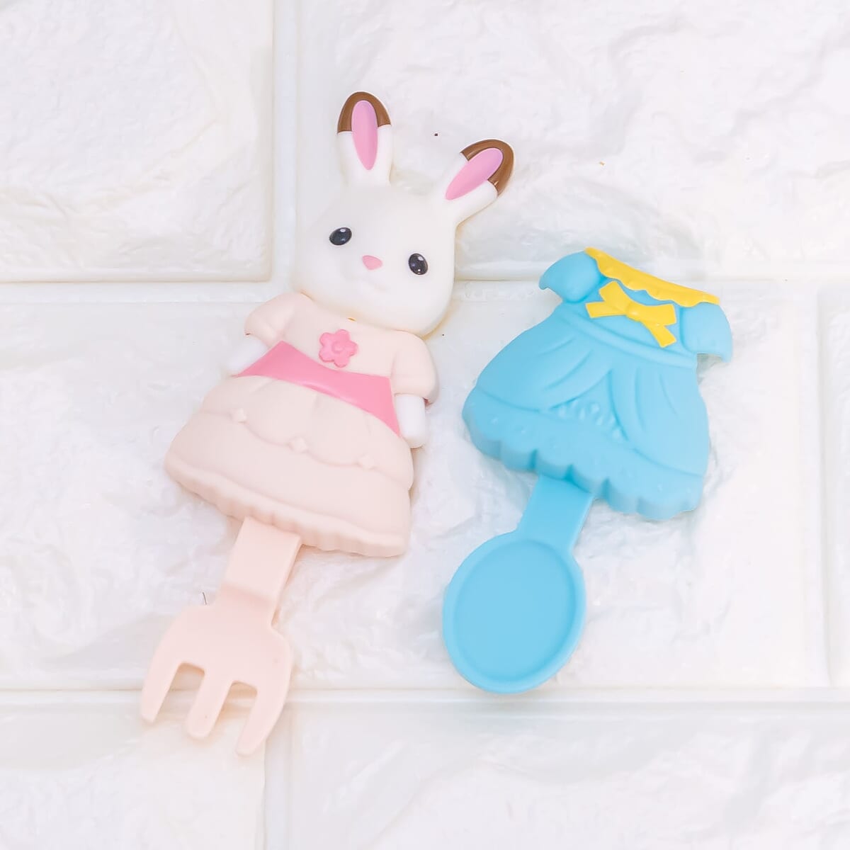 ショコラウサギのフレアのドレス型スプーンとフォークに付け替えて遊ぶことができます。