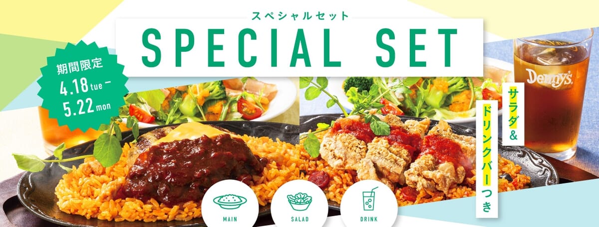 デニーズで人気の「ジャンバラヤ」と「トマトピラフ」がお得に楽しめる「スペシャルセット」がゴールデンウィークシーズン限定で登場!