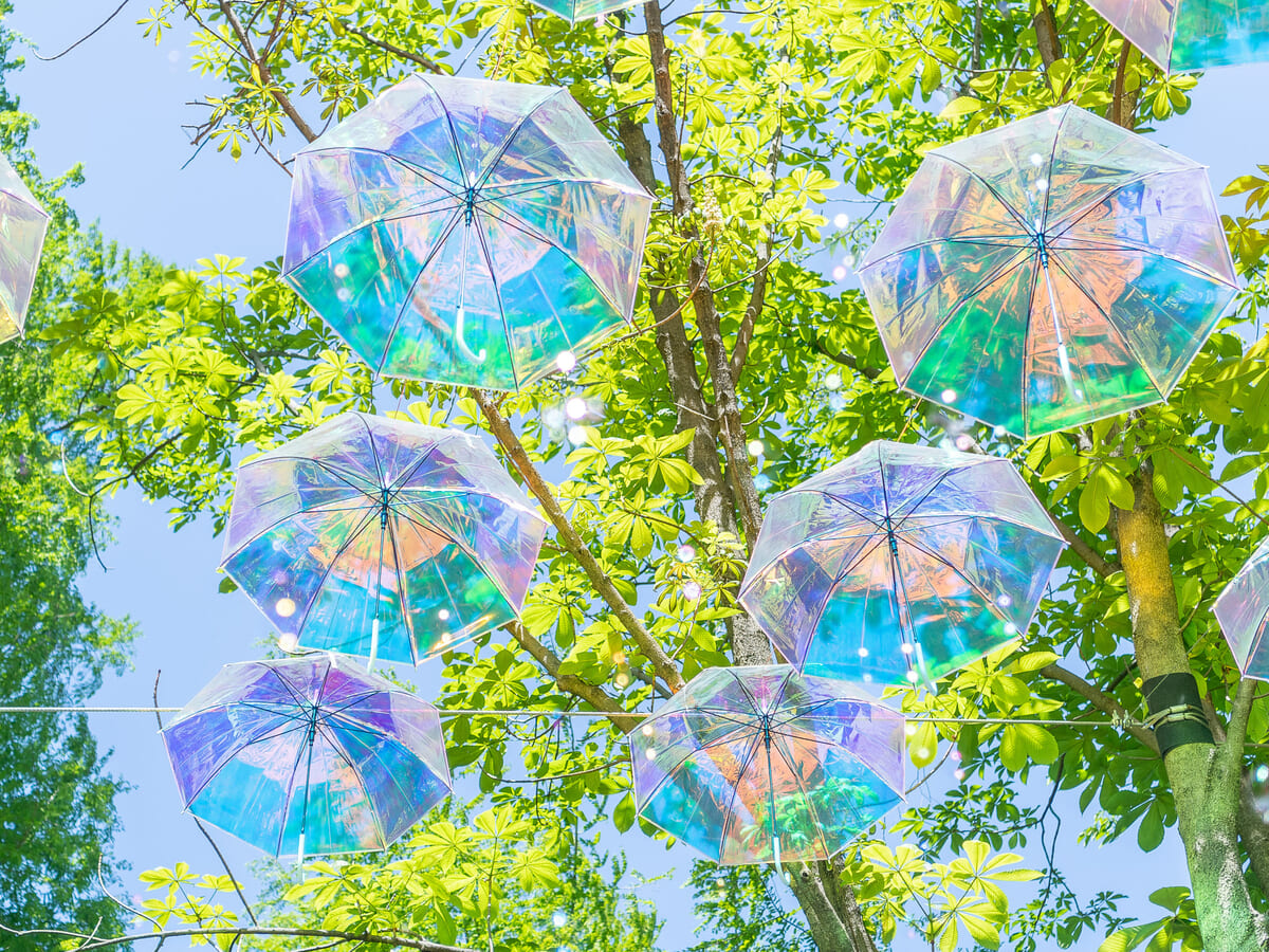 2023年の新たな試みは、シャボン玉の演出と、トレンドのオーロラ素材を使用したアンブレラです。