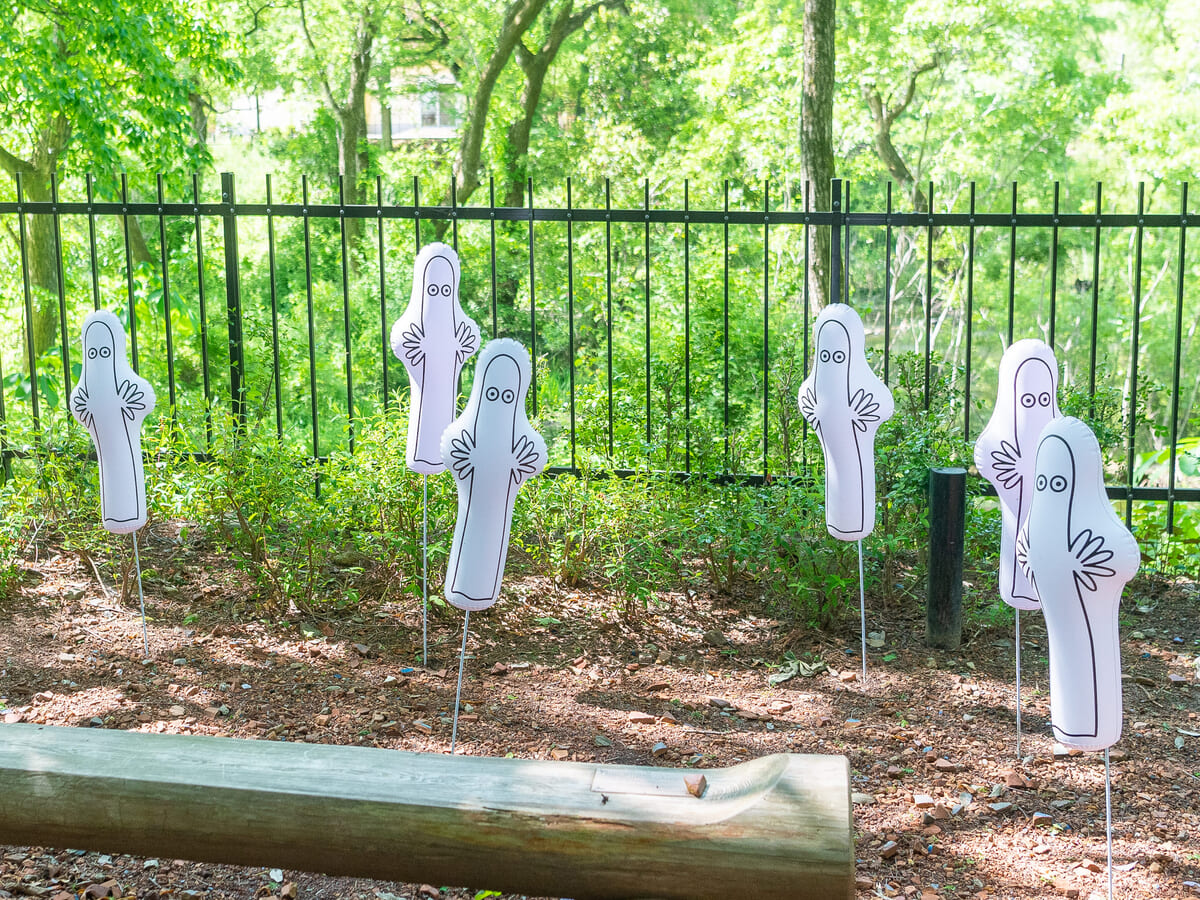 ムーミン谷に生息する不思議な生き物「ニョロニョロ」のデコレーションが、道行くゲストをお出迎え。