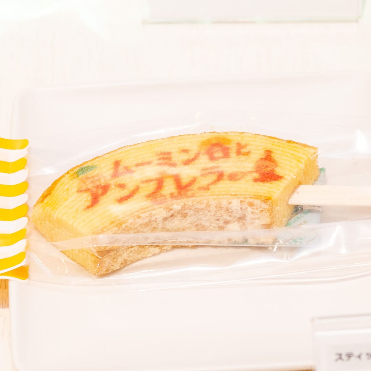 「ムーミン谷とアンブレラ」のロゴが入った、ひとくちサイズの食べやすいバウムクーヘン。