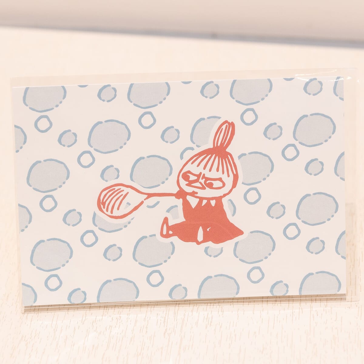 しゃぼん玉をバックに、イベントロゴの「リトルミイ」が描かれたポストカードです。