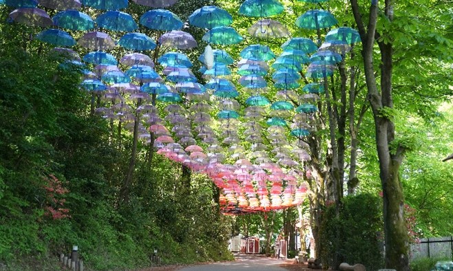 アンブレラスカイとは、頭上をカラフルな傘で埋め尽くし、その美しさを楽しむイベントです。