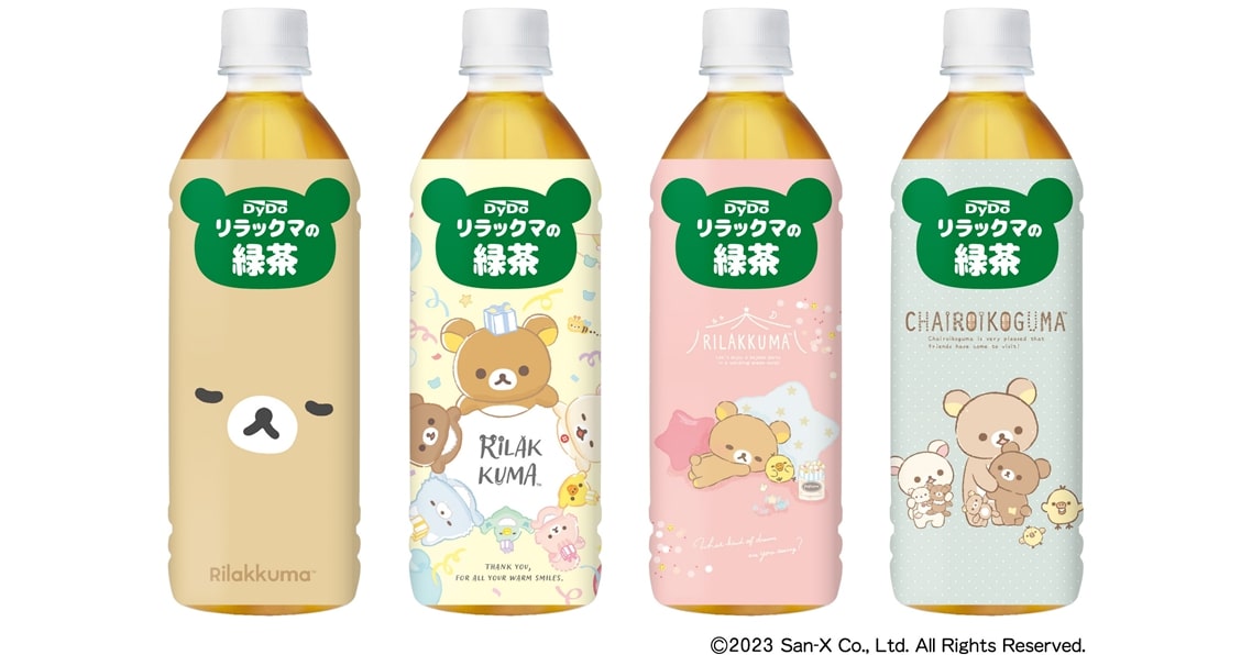 今回ダイドードリンコから発売されるコラボボトルは、「リラックマの緑茶」「リラックマのほうじ茶」「リラックマの麦茶」「リラックマの天然水(オンライン限定)」の4種類。