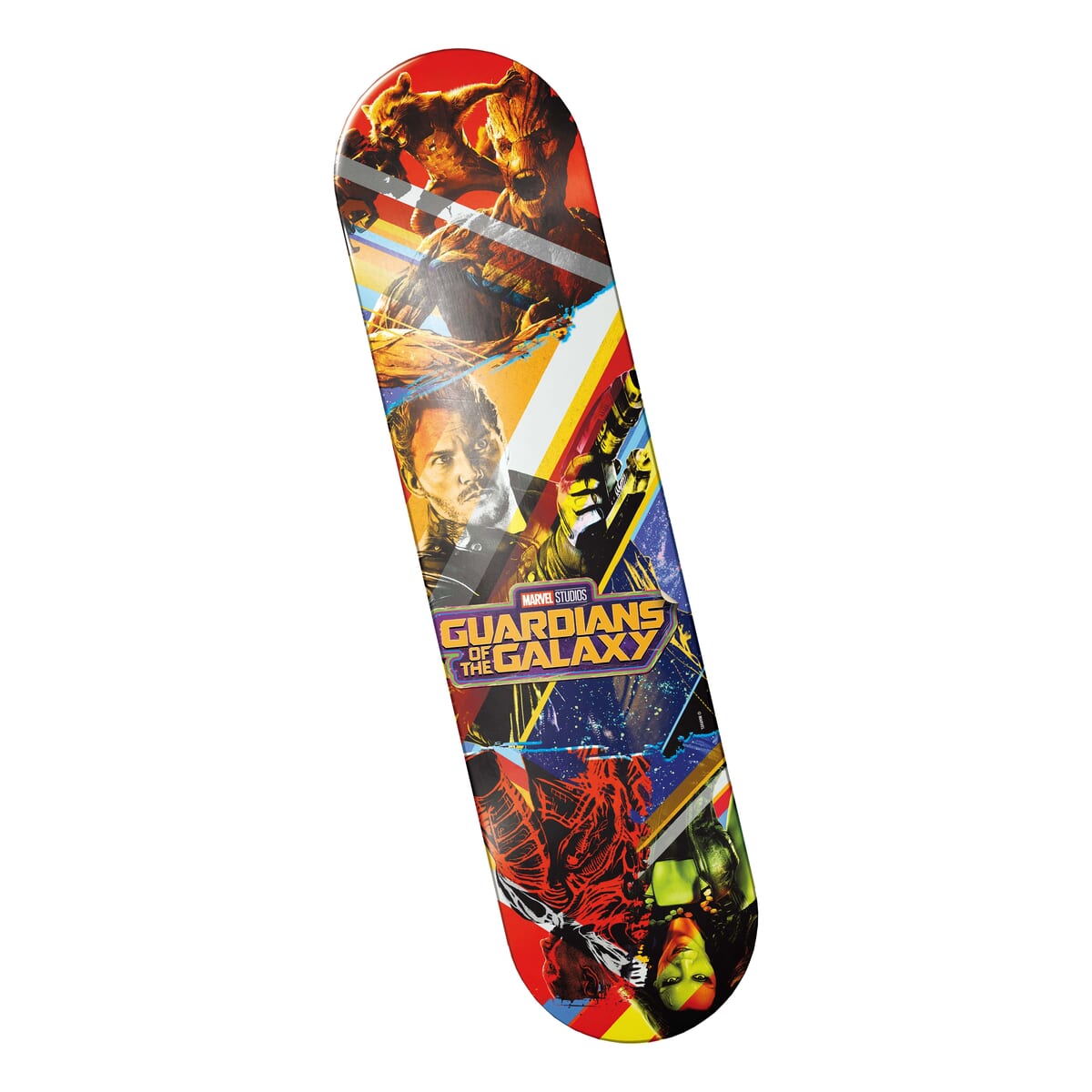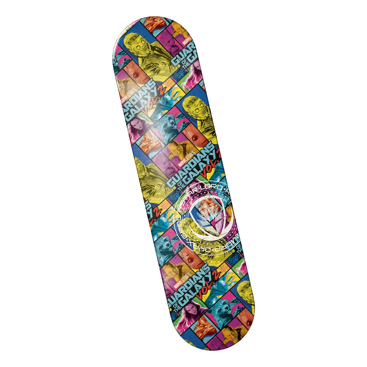 スケートボードデッキ下部には、「ガーディアンズ・オブ・ギャラクシー」のエンブレムもレイアウト。