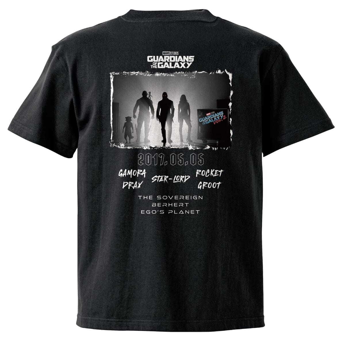 「スター・ロード」「ガモーラ」「ドラックス」「ロケット」「グルート」の5人がカラフルに描かれたクールなデザインがインパクト大。