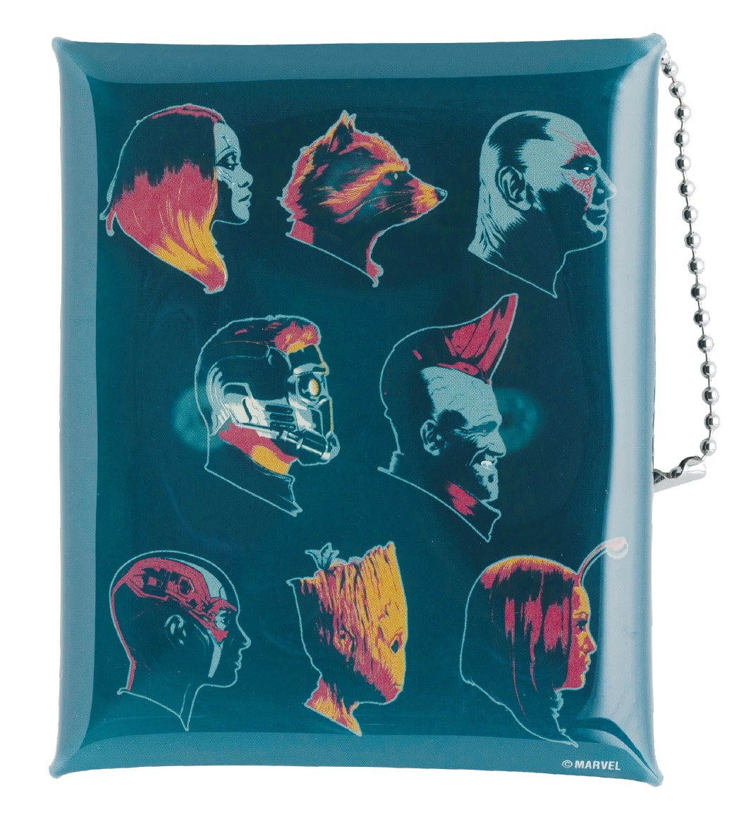 『ガーディアンズ・オブ・ギャラクシー』より、「スター・ロード」「ガモーラ」「ロケット」「グルート」「ドラックス」の個性を表現しながらシンプルに描いたポーチや、