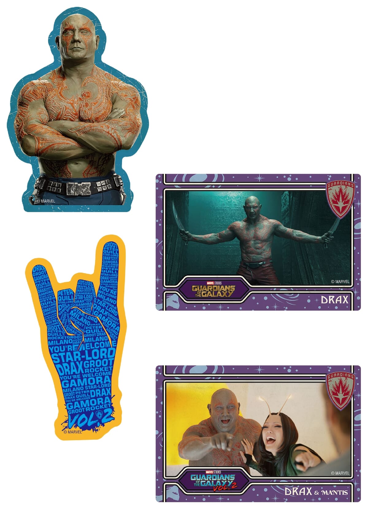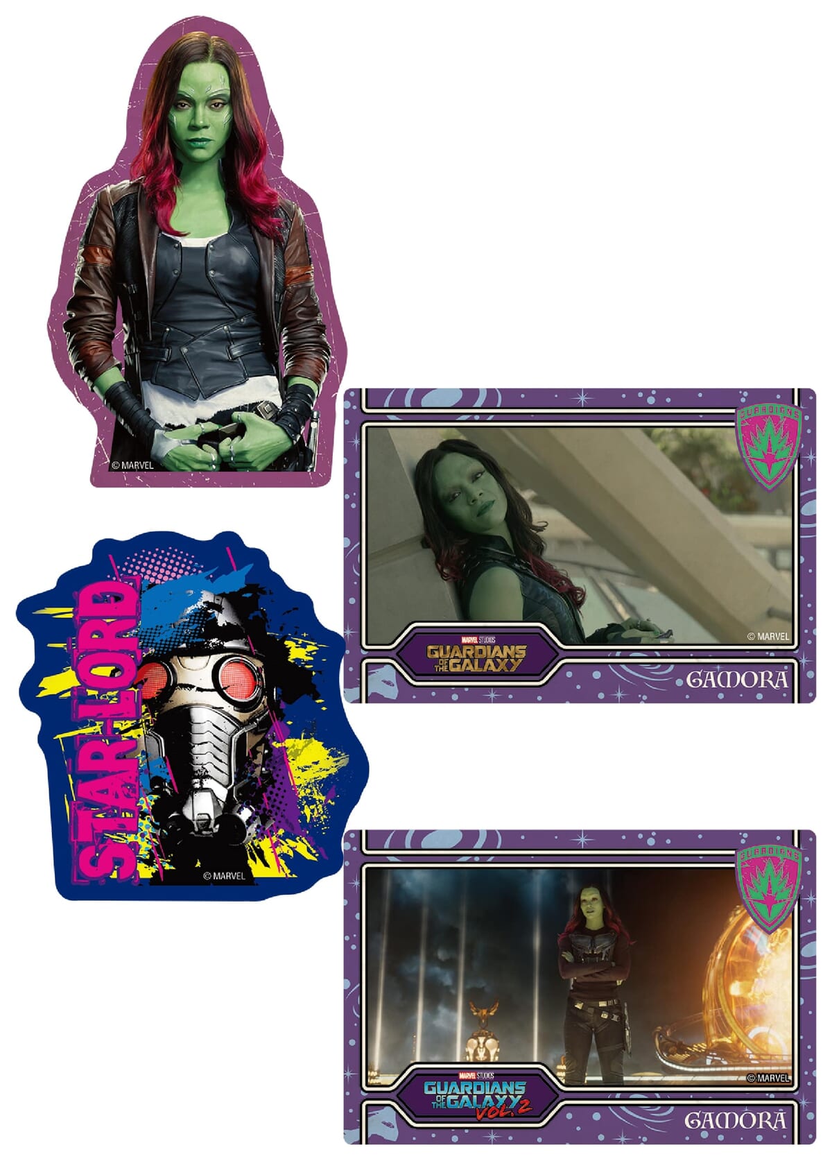 さらに「ガーディアンズ・オブ・ギャラクシー」をイメージしたデザインやロゴなどのステッカーが1枚、計4枚がそれぞれ入っています。