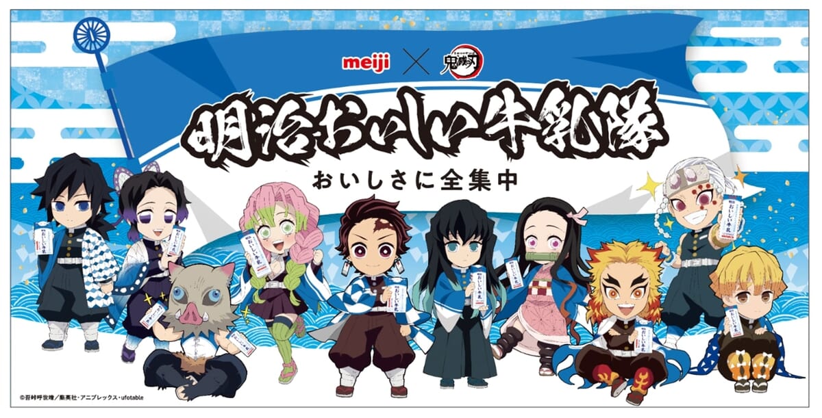 “「明治おいしい牛乳」×「鬼滅の刃」 キャンペーン”第3弾では「明治おいしい牛乳」のおいしさを伝えるために、新キャラクターに「甘露寺蜜璃」「時透無一郎」を加え「明治おいしい牛乳隊」を再結成!