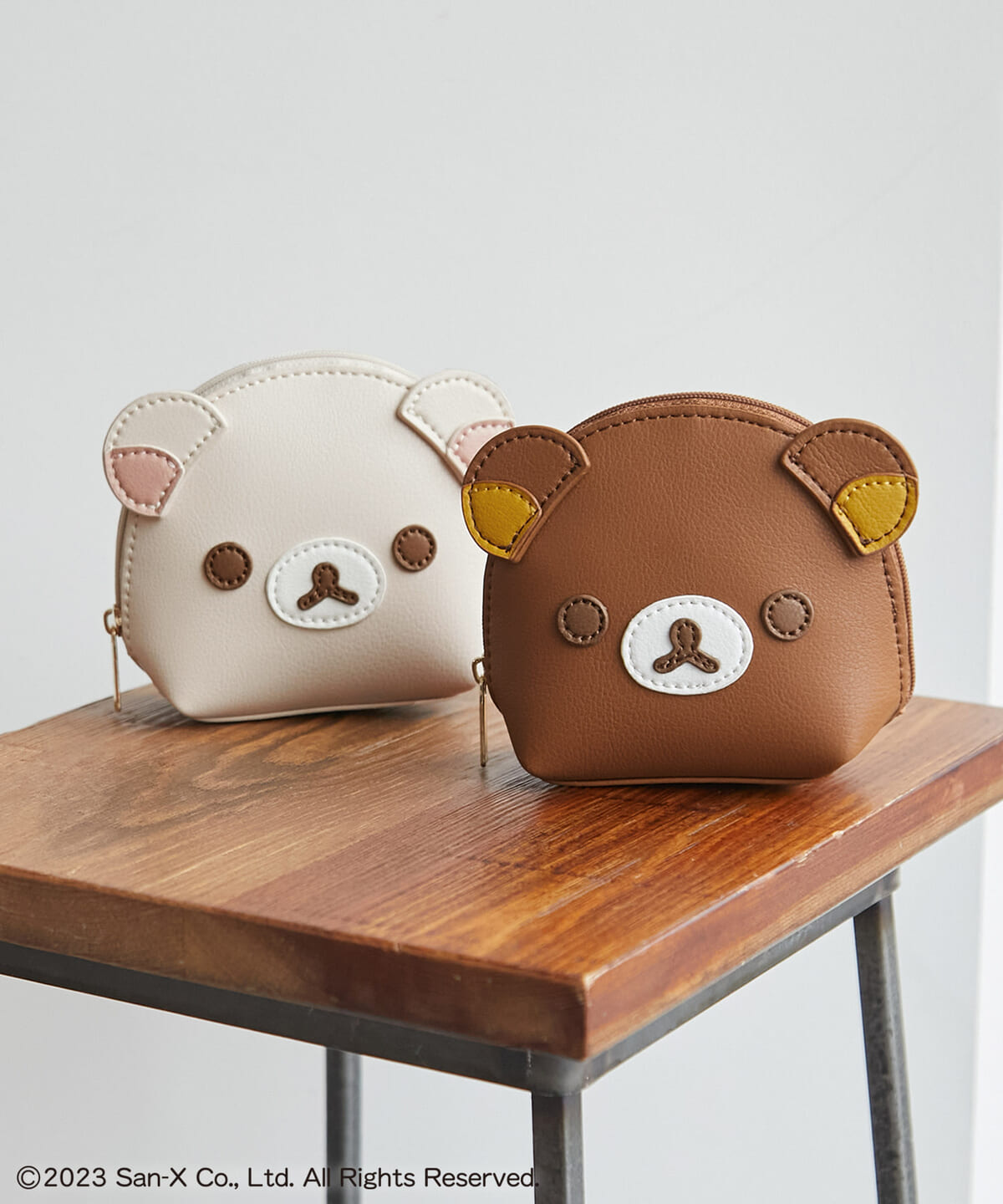 「リラックマ」と「コリラックマ」のお顔がデザインされたミニポーチ。