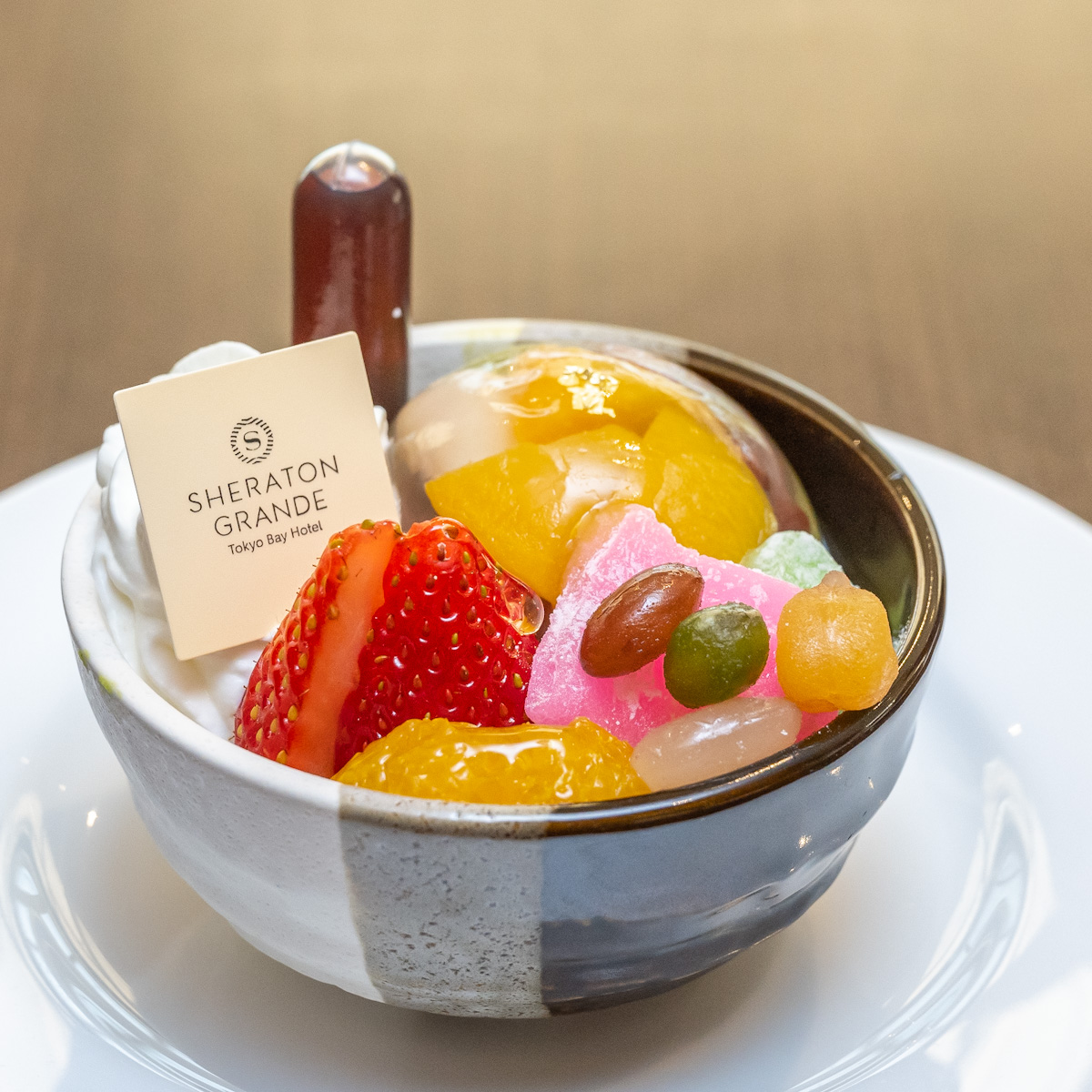 色鮮やかな求肥、いちご、みかんなどをたっぷりのせ、彩り豊かに仕上げられています。