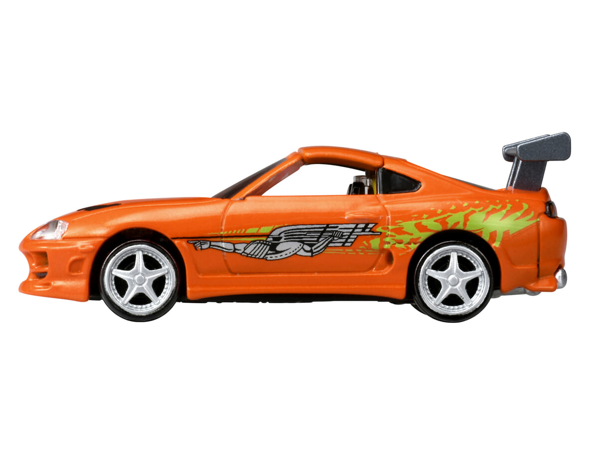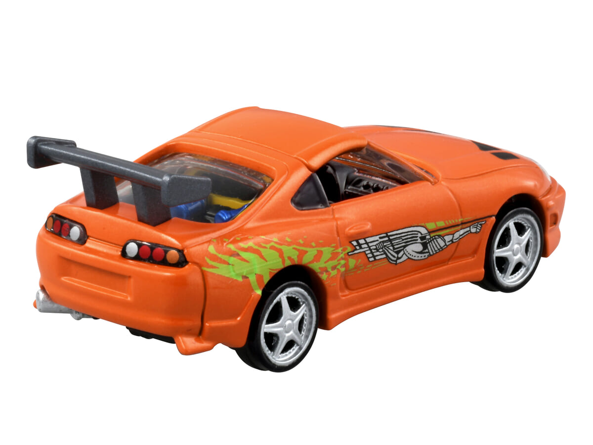映画『ワイルド・スピード』シリーズに登場する「スープラ」と「1999 SKYLINE GT-R」をディテールまで再現したトミカ。