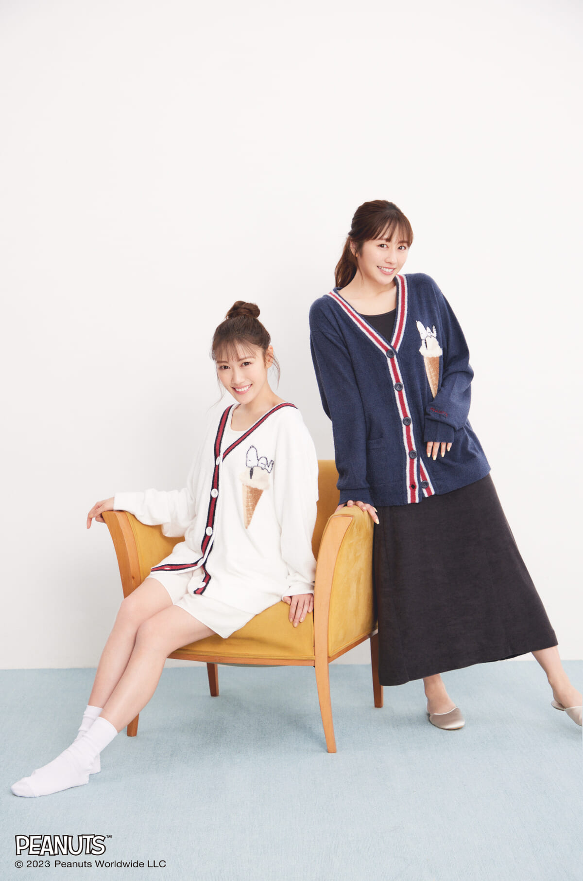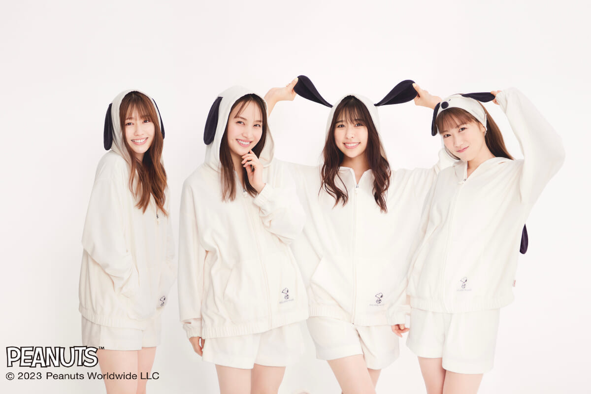 ガールズユニット「ももいろクローバーZ」の百田夏菜子さん、玉井詩織さん、佐々木彩夏さん、高城れにさんが着る『PEANUTS』とコラボレーションしたルームウェア。