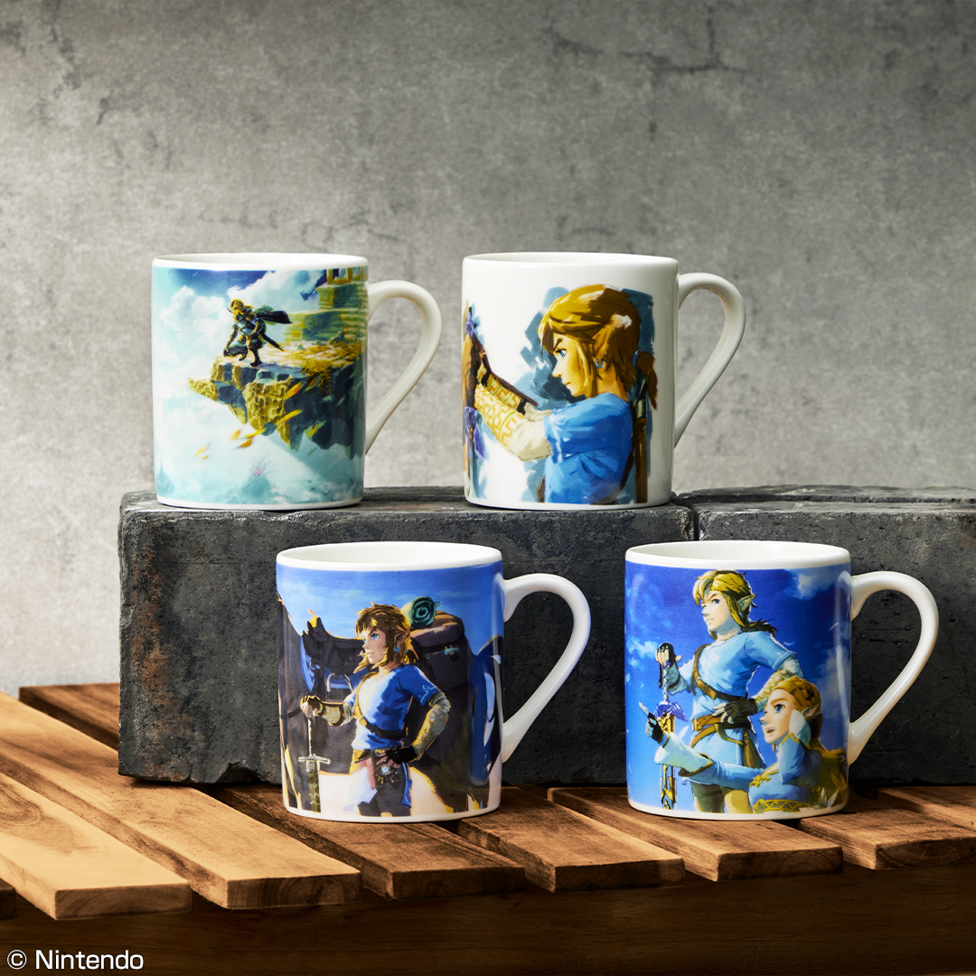 『ゼルダの伝説 ティアーズ オブ ザ キングダム』『ゼルダの伝説 ブレス オブ ザ ワイルド』など「ゼルダの伝説」シリーズのイラストが描かれたマグカップです。