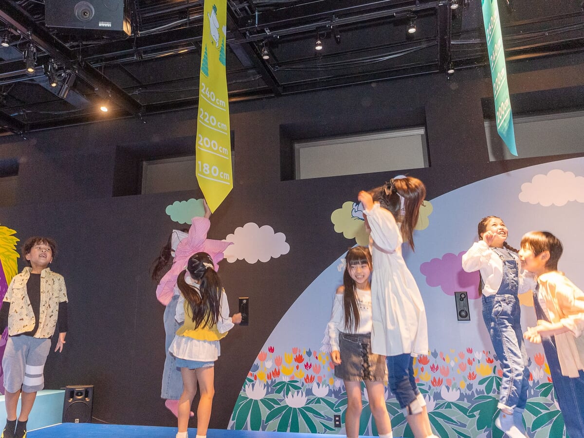 天井からはバナーも吊り下げられていて、何cm飛べたかを競争する楽しみ方もできます☆