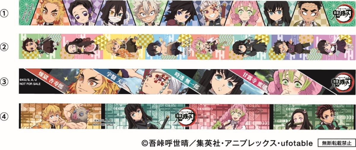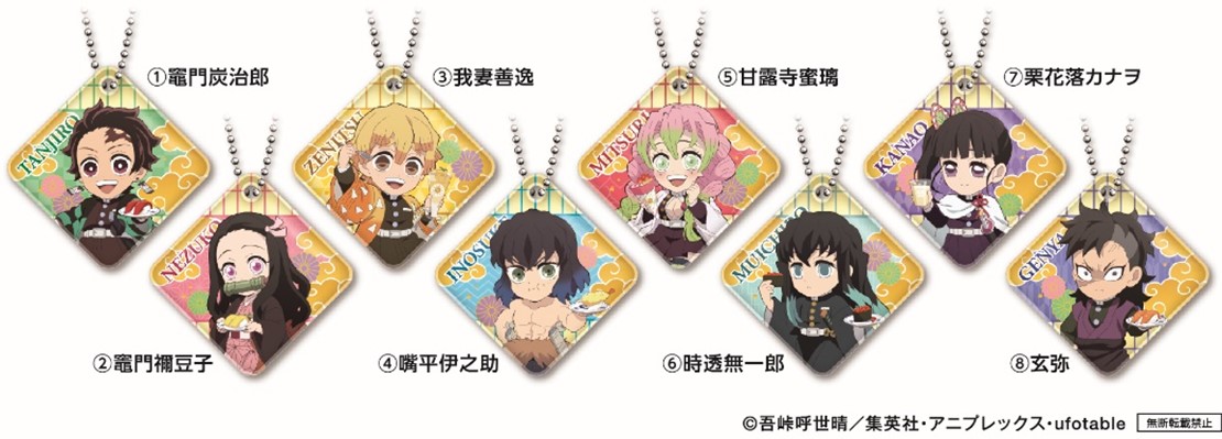 主人公「竈門炭治郎」のほか、「時透無一郎」や「甘露寺蜜璃」などのデザイン全8種をラインナップ。