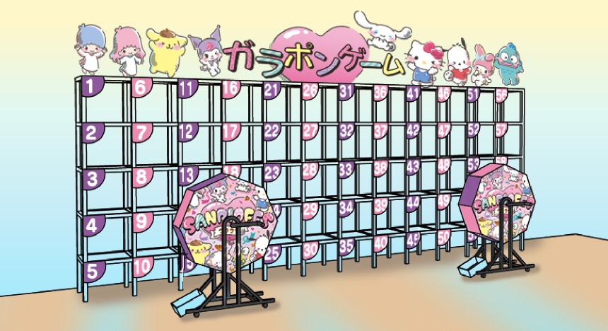 ガラポンを回して景品をゲットできる「ガラポンゲーム」や、かわいくてユニークなサンリオカプセルトイが楽しめる「カプセルトイコーナー」が登場。