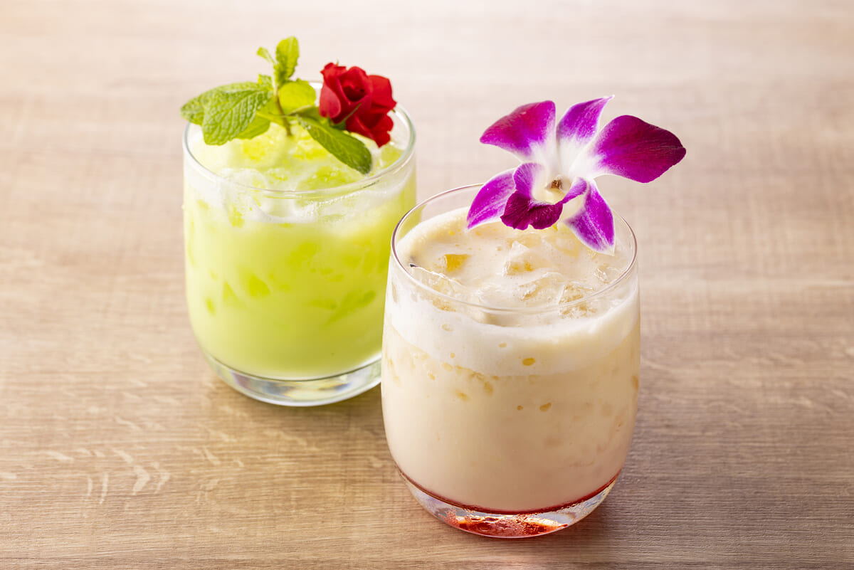 ドリンクは豆乳にバナナ、パイナップル、グレナデンシロップを加えたノンアルコールカクテル、またはキウイとメロンを合わせた本プラン限定のオリジナルドリンク2種から選べます。