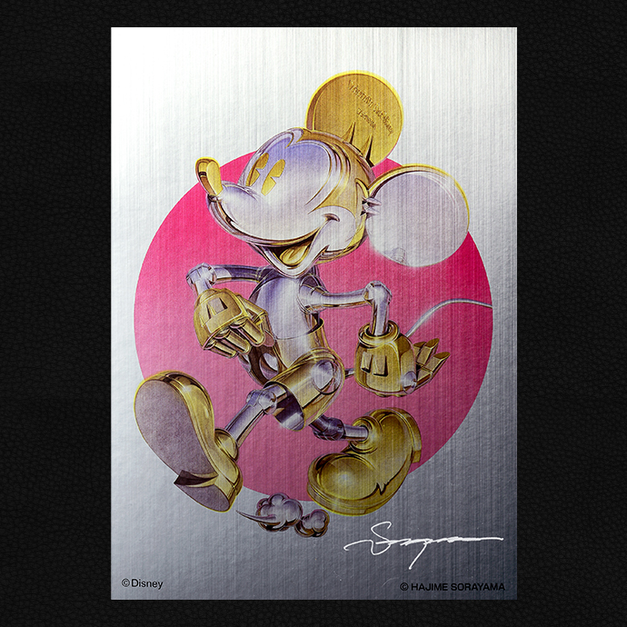 自身もディズニーの熱烈なファンと公言する空山基さんの描き起こした、フューチャーミッキーの原点ともいえる構想スケッチをメタリックに表現したアートボード。