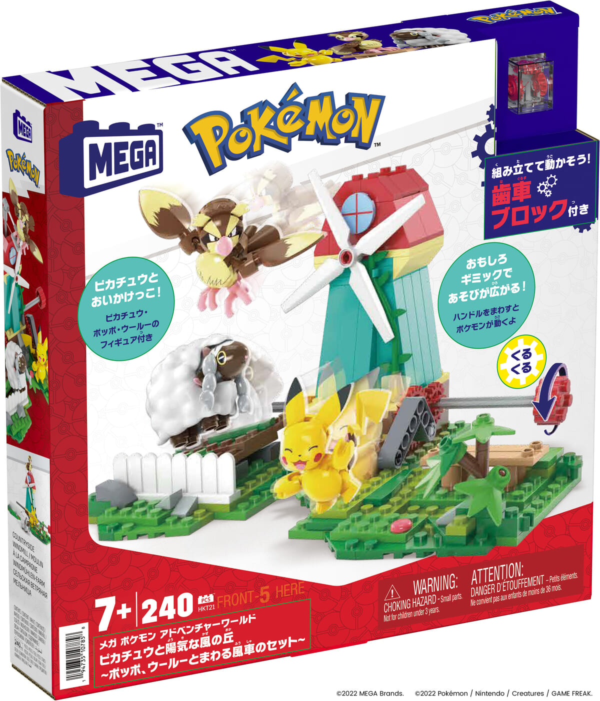 そんなマテル・インターナショナルの歯車ブロック付きシリーズ「メガ ポケモン アドベンチャーワールド」に、「ピカチュウと陽気な風の丘~ポッポ、ウールーと回る風車のセット~」が登場。