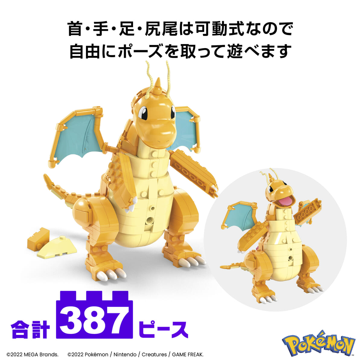 387ピースのブロックで精巧なカイリューを自分で組み立てられるセットです。