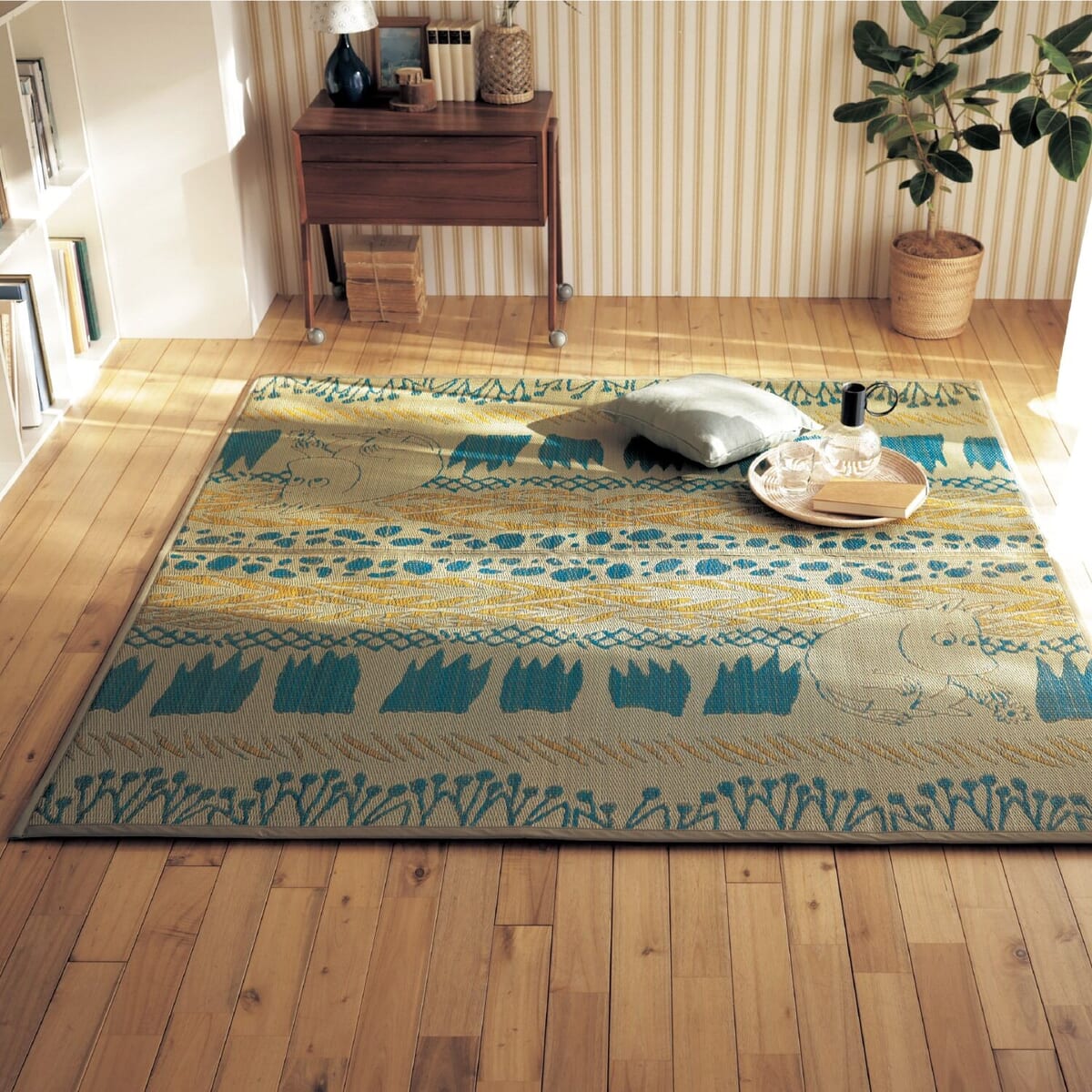 ふっくら弾力で居心地よく、「ムーミン」が可愛い、い草を使ったラグ。