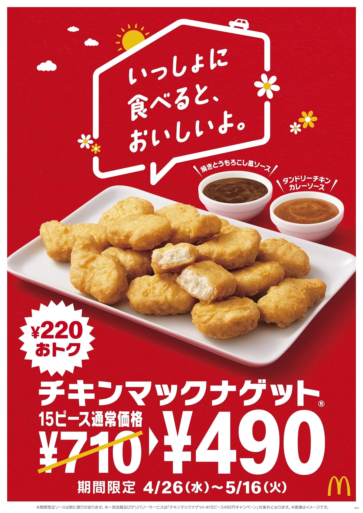 ※一部店舗及びデリバリーサービスは「チキンマックナゲット15ピース 490円キャンペーン」対象外となります