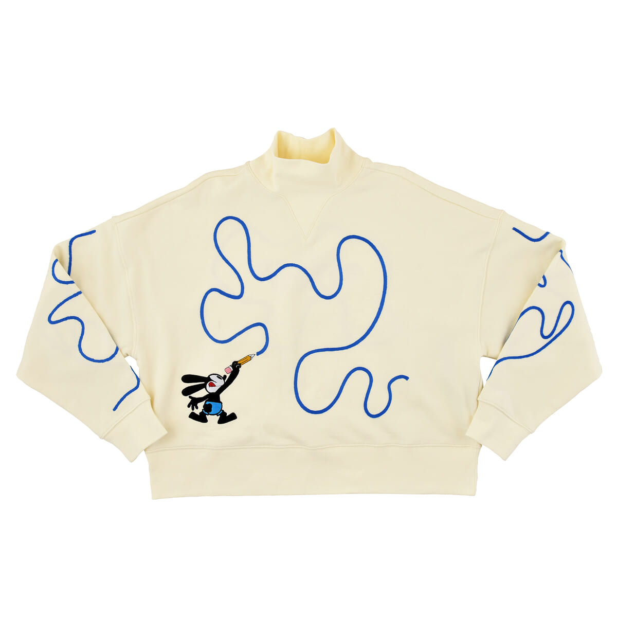 絵を描く「オズワルド・ザ・ラッキー・ラビット」がプリントされた長袖トレーナー。
