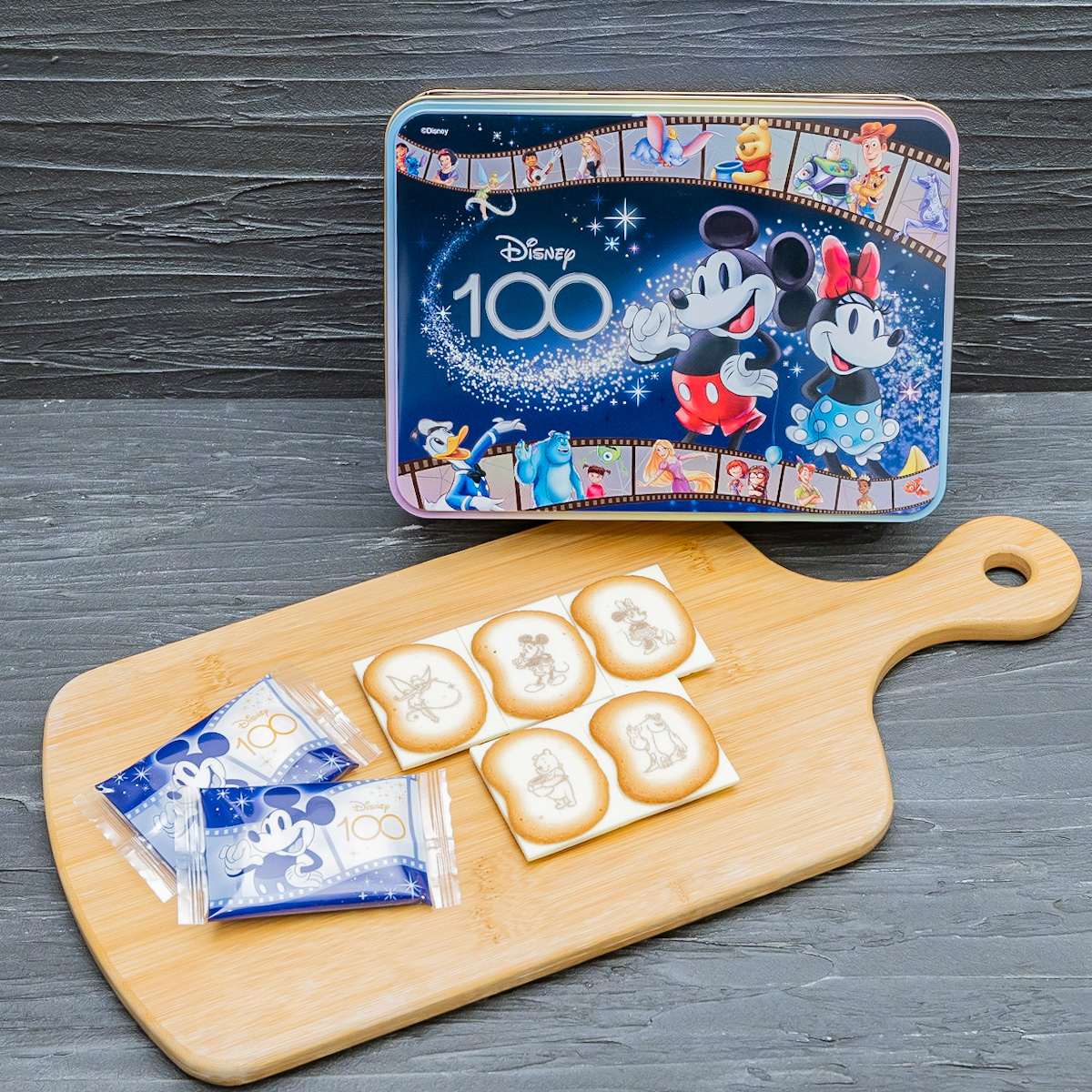 『ディズニー100/ショコラサンド「⾒ぃつけたっ」 』は「ドナルドダック」「ラプンツェル」「ダンボ」『トイ・ストーリー』の「ウッディ」や「バズ・ライトイヤー」など、ディズニーとピクサーキャラクターがデザインされたコレクションしたくなる缶に入っています。